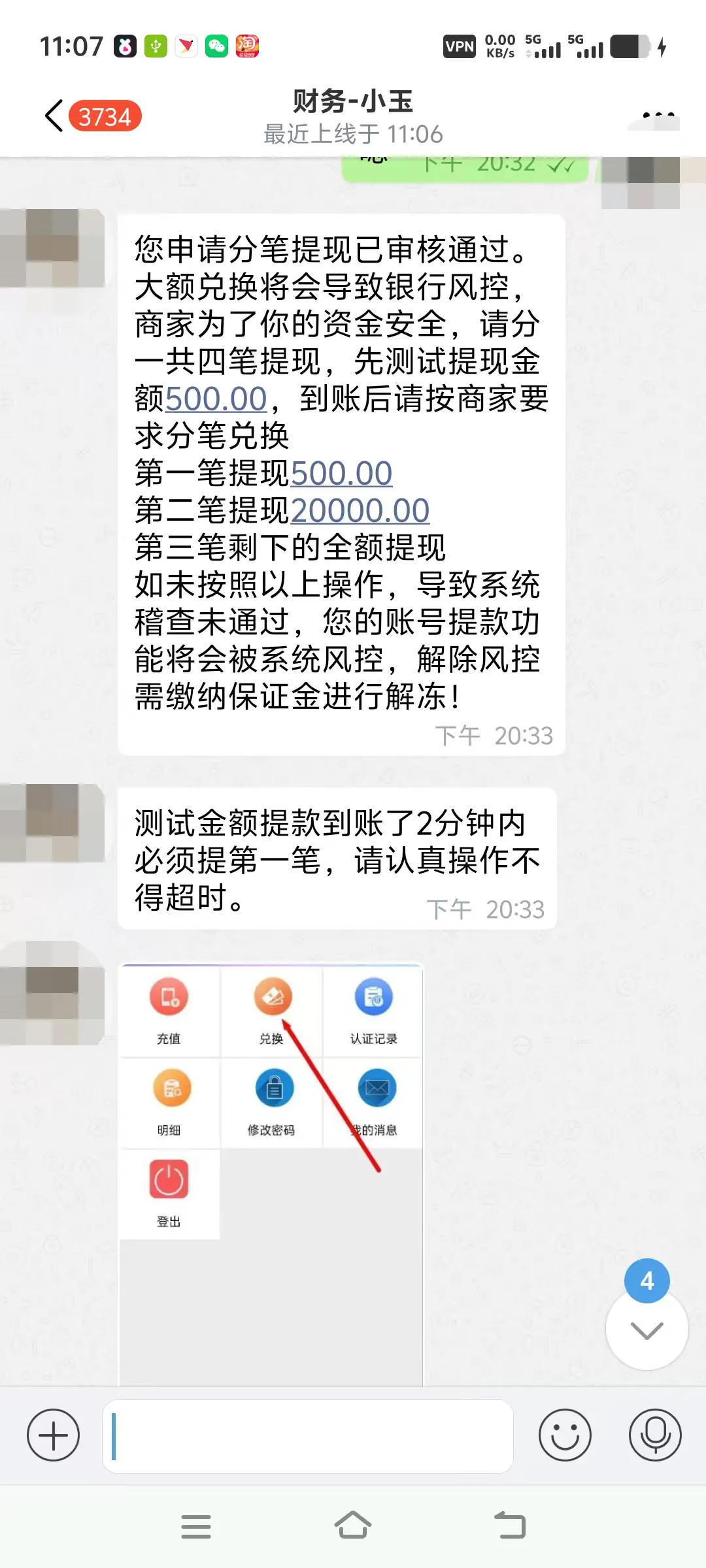 图为“客服”发给孔先生做任务的信息。