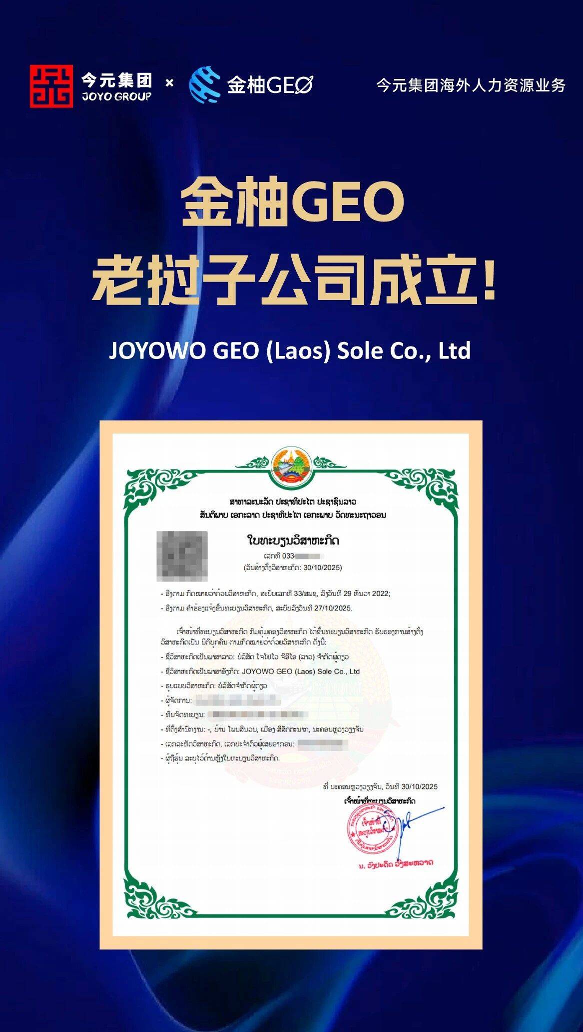 以进博会为媒,中国的超大规模市场和高水平开放正不断为世界经济注入“东方暖流”,为全球发展增添信心和动力。在全球产业链重构与区域经济一体化加速的背景下,老挝作为东盟新兴市场及“一带一路”倡议的重要节点,正吸引越来越多中国企业的目光。金柚GEO老挝自营公司的设立,既是今元集团全球化战略的关键落子,也是中老经贸合作深化的缩影。
