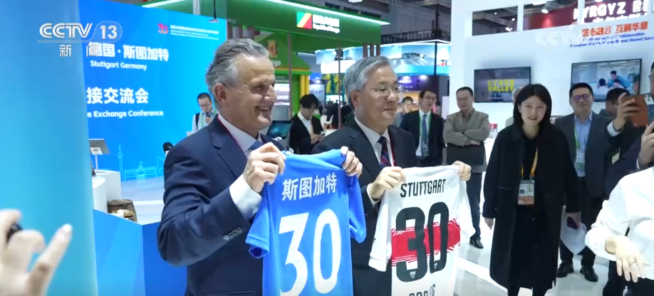 财经老王在进博会国家馆看见了两件特殊的展品——球衣。一件是斯图加特足球俱乐部的球衣,一件是“苏超”南京队的球衣。两座都有足球情缘的城市怎么在进博会走到了一起?