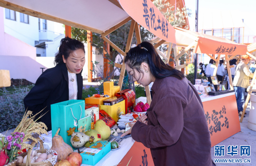 2025年10月25日,游客在岱山县共富工坊购买农产品。新华网发(受访者供图)