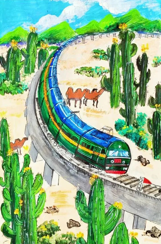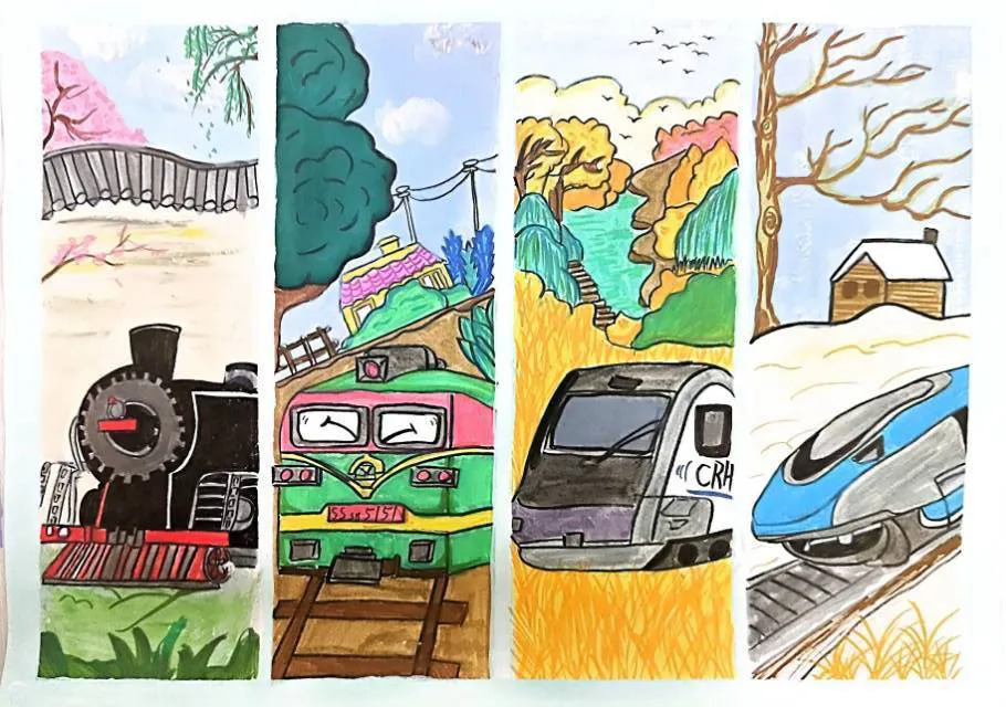 回家的路上,我翻着爸爸收藏的老照片:黑白照片里是詹天佑设计的京张铁路;彩色照片中,崭新的京张高铁穿越居庸关隧道,智能列车自动驾驶,外国人都竖起大拇指。爷爷常说“铁路是国家的脊梁”,如今,这脊梁挺得笔直,载着14亿人的梦想飞驰。