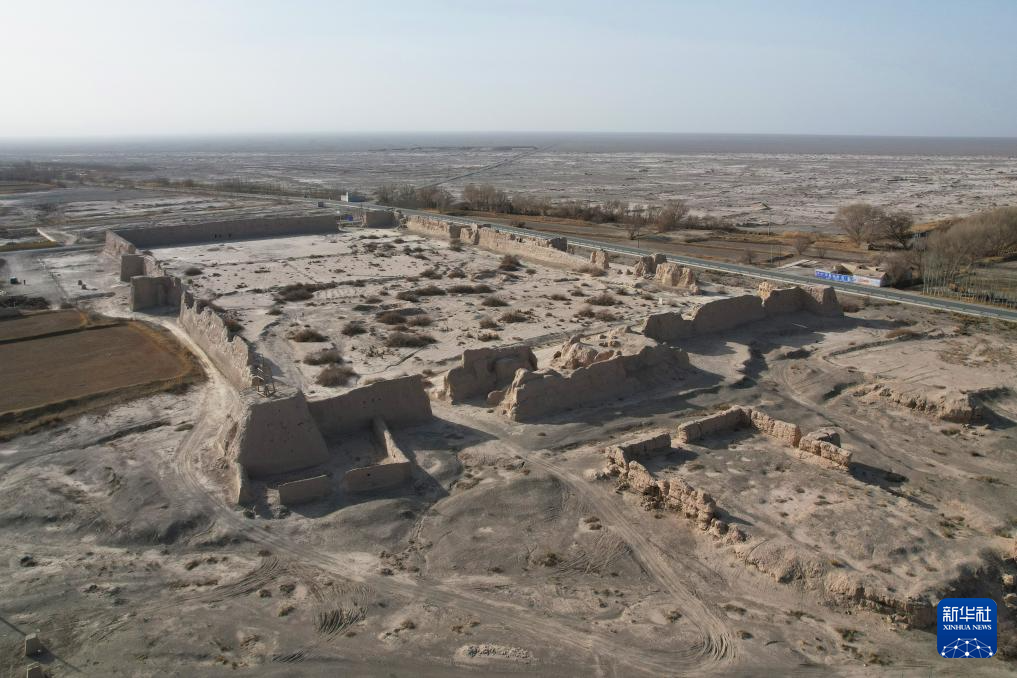 这是11月18日在甘肃省酒泉市瓜州县锁阳城镇常乐村拍摄的破城子遗址(无人机照片)。新华社记者 郎兵兵 摄