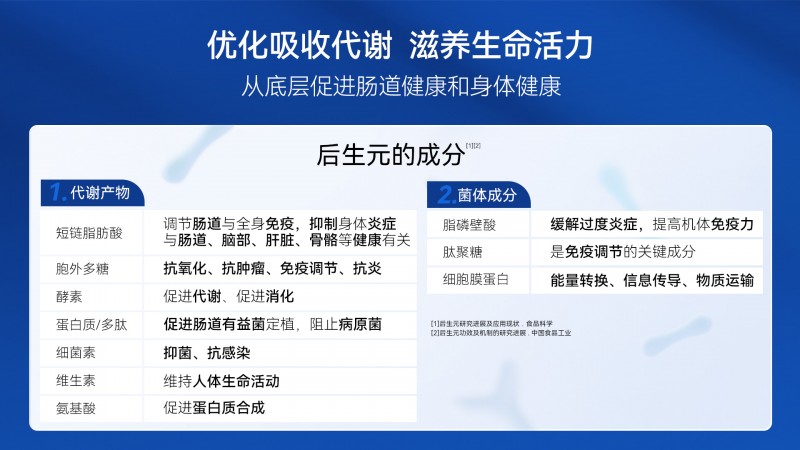 如何更好的维护肠道菌群平衡?在微生态领域,后生元是当下的科研热点。后生元是有益菌灭活后的菌体成分及其代谢产物统称,包含短链脂肪酸、维生素、氨基酸等。