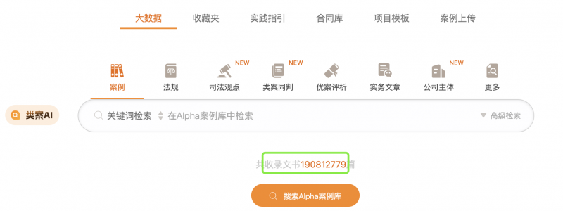 在此背景下,Alpha法律系统的智能法律检索凭借信息覆盖、效率与精度的突破,迅速获法律人认可,成为重塑检索生态的核心工具。其竞争力源于iCourt打造的“强大数据库+智能技术”双重支撑。Alpha法律系统核心底气,是覆盖全面、更新及时的专业数据库。作为法律领域智能操作系统,它整合案例库、法规库、司法观点库等板块,构建“一站式”信息矩阵。目前收录超1.9亿篇各级法院裁判文书、560万+条法规,且以每日10万+条速度更新,从根源解决传统检索“信息滞后”痛点。
