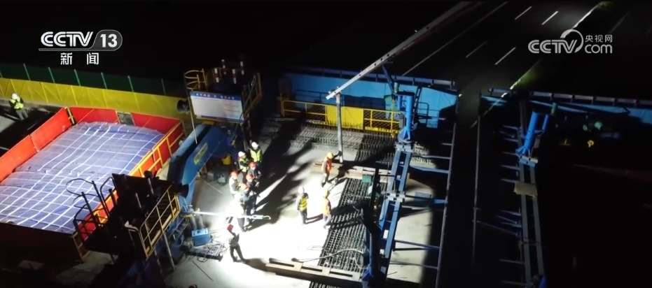 在浙江嘉兴市海盐县,11月29日凌晨,随着最后一方混凝土浇筑完成,通甬高铁海盐特大桥跨杭浦高速连续梁成功合龙。
