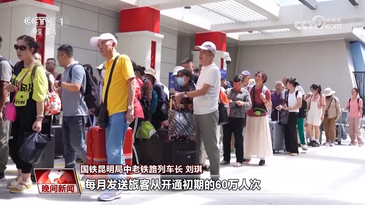 中老铁路国内段日均开行旅客列车由开通初期的8列增至最高86列,累计发送旅客5134万人次;老挝段日均开行旅客列车由开通初期的4列增至最高18列,普速旅客列车扩编为10辆以上,累计发送旅客1124万人次。