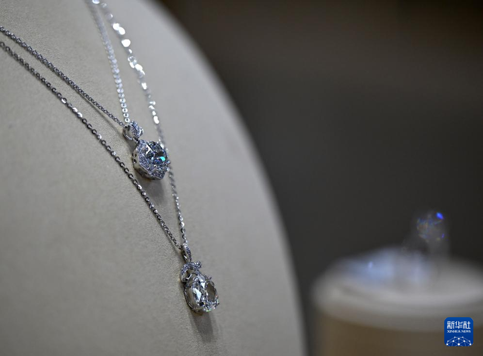 这是力量钻石直营首饰工厂店内售卖的钻石首饰(6月11日摄)。新华社记者 李嘉南 摄