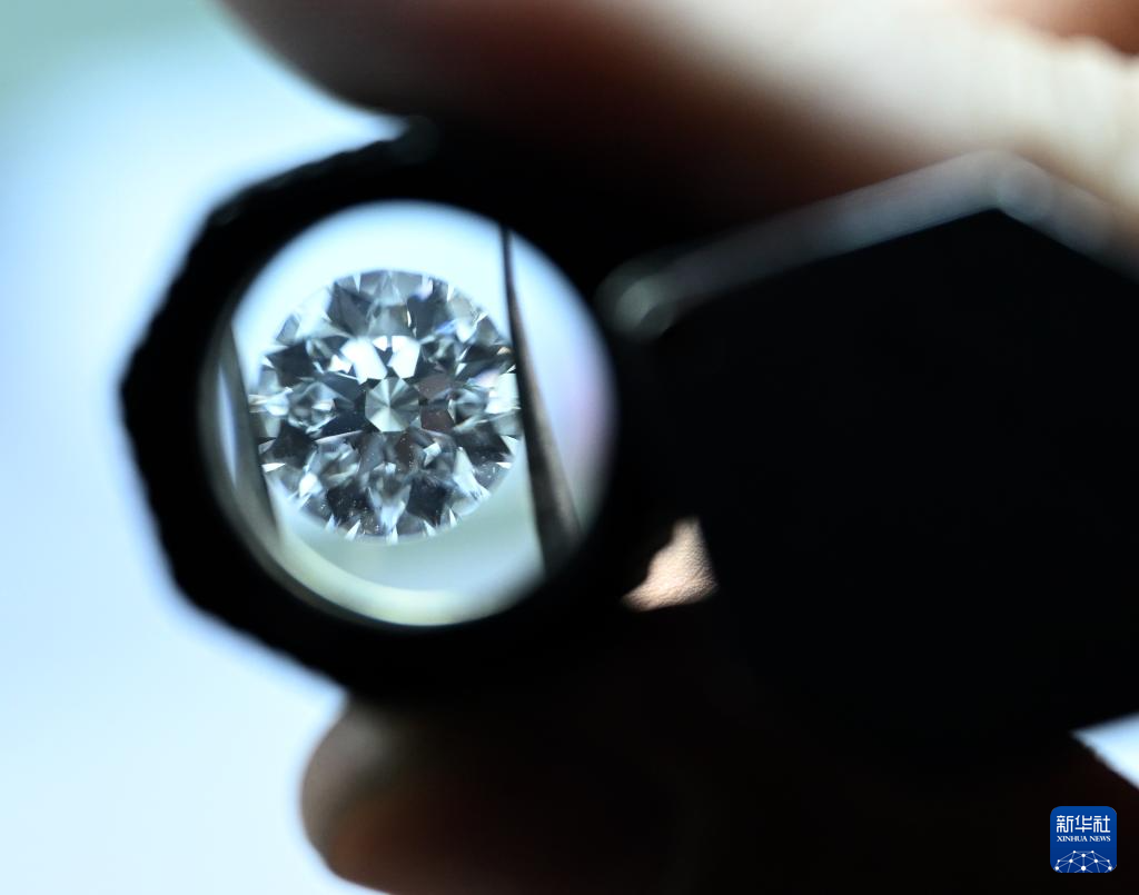 河南省力量钻石股份有限公司工人在查看钻石打磨效果(6月11日摄)。新华社记者 李嘉南 摄