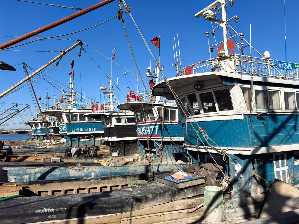 停靠在营口市鲅鱼圈区望海珍珠湾渔港码头的渔船。新华社记者 黄韬铭 摄