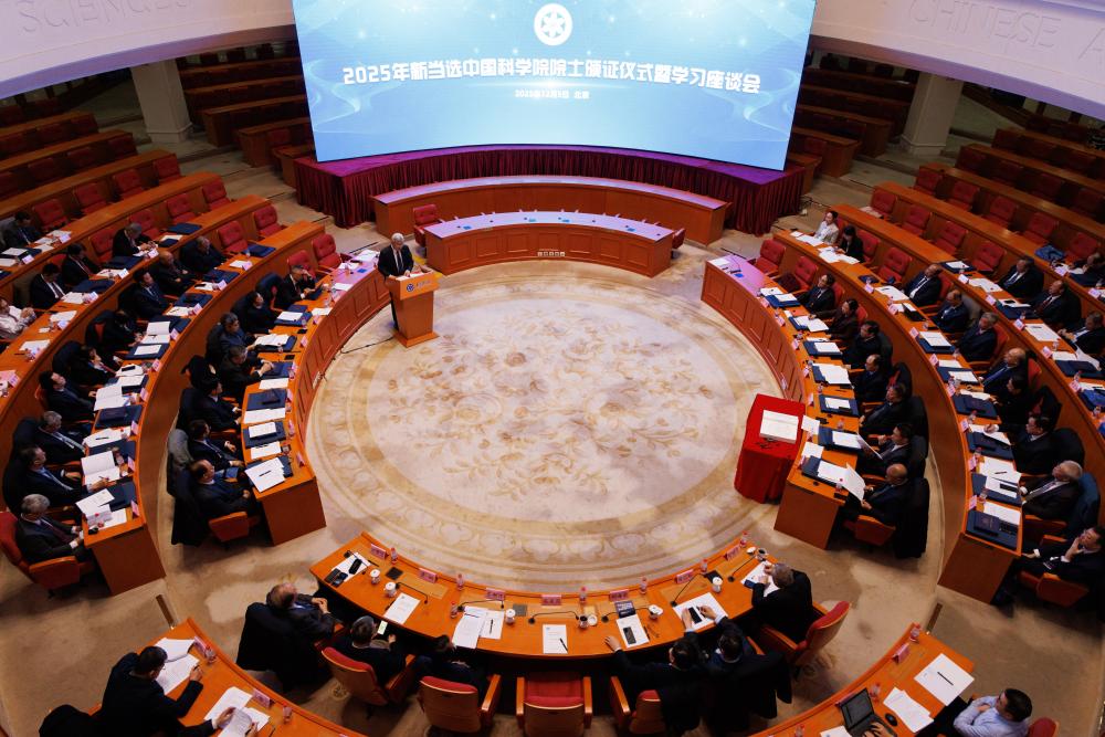 12月5日,中国科学院学术会堂,当新当选的院士代表、数学物理学部刘若川院士宣读中国科学院当选院士承诺书时,中国工程院2025年当选院士学习教育暨颁证仪式也在同步进行。