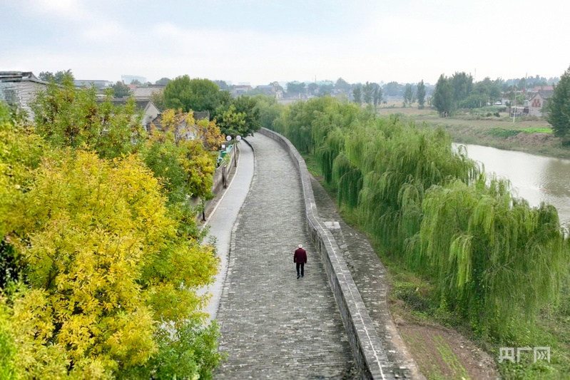 漫步古镇运河间,两侧草木葱茏,运河静静流淌(央广网发 程永辉 摄)