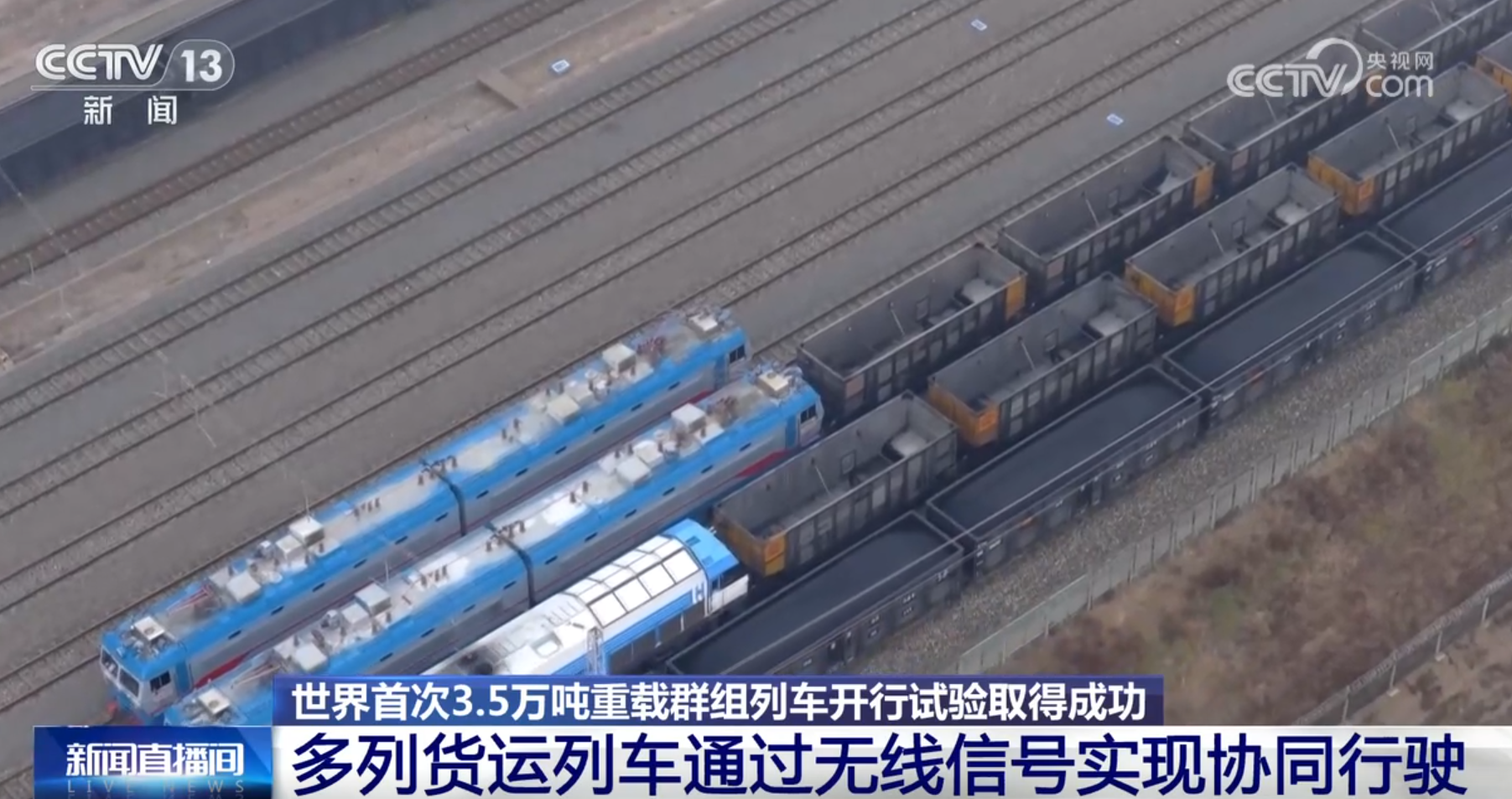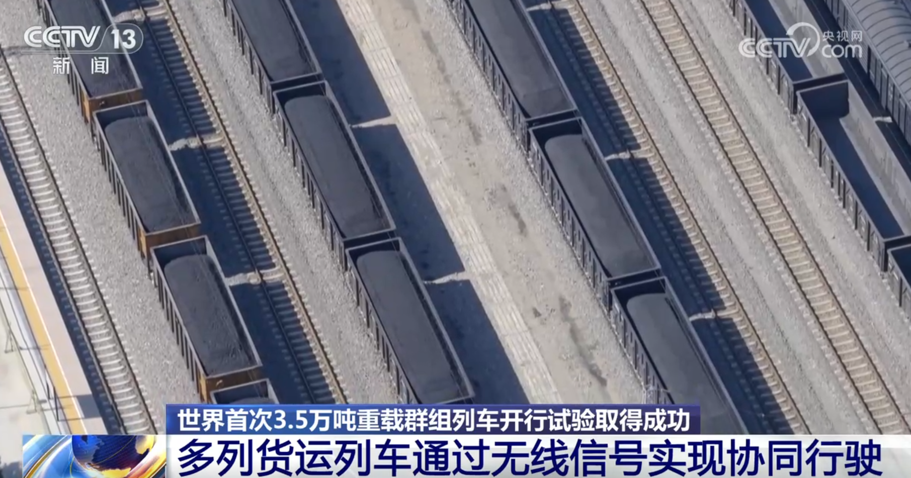 世界首次3.5万吨重载群组列车开行试验取得成功:多列货运列车通过无线信号实现协同行驶
