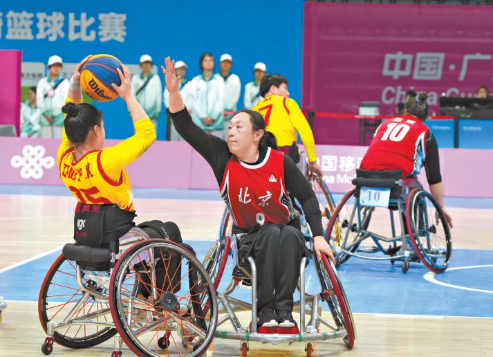 昨天(8日)下午,全国第十二届残疾人运动会暨第九届特殊奥林匹克运动会轮椅篮球决赛,北京队分别获得男子组亚军和女子组亚军。 本报特派记者 安旭东摄