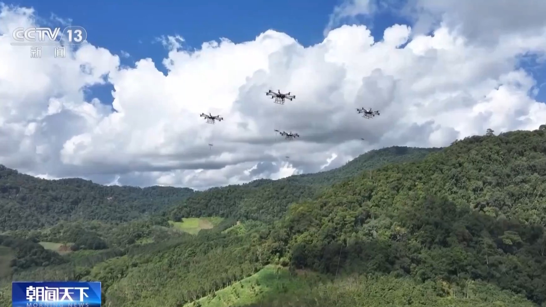 总台央视记者 闫素:这个大屏上实时接入了无人机直播画面,有的无人机正沿着高速路进行交通巡视、有的围绕风电叶片作业,还有的飞行在农田上空……无人机群的应用场景正在更新。