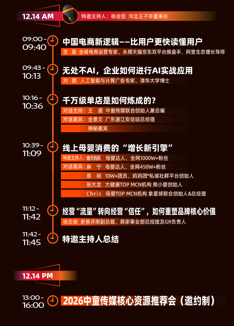 聚焦最前沿的增长工具与模式:由清华大学博士后带来“企业AI实战应用”指南;由千万粉丝母婴达人、TOPMCN机构创始人揭秘“从流量到信任”的内容与私域运营体系;并深度解析抖音母婴市场洞察与电商新逻辑,提供可立即上手的增长方案。