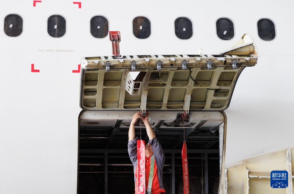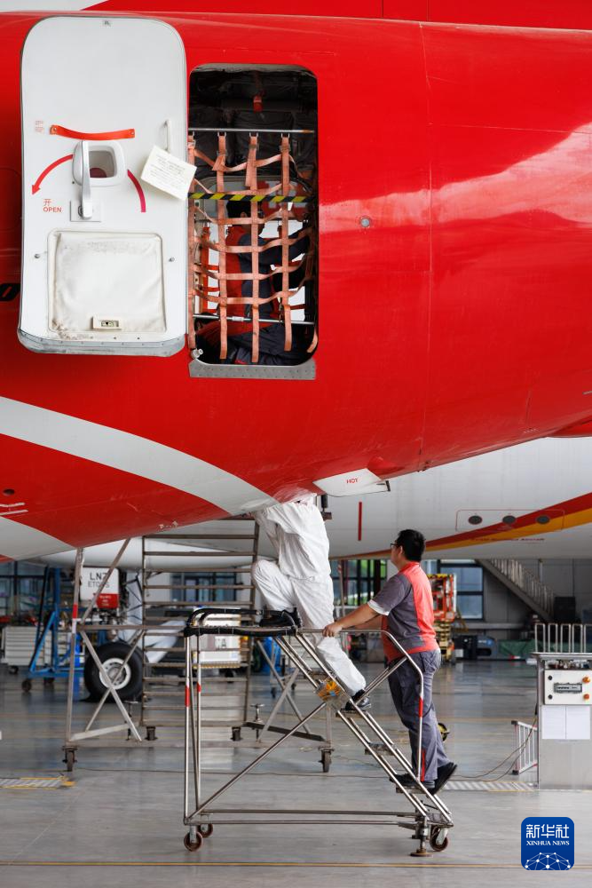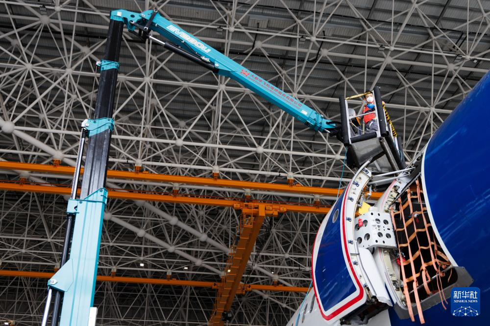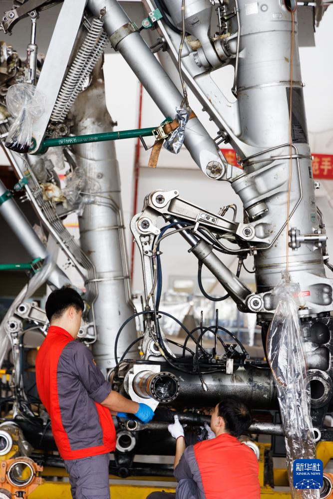 12月9日,工作人员在海南自贸港一站式飞机维修产业基地维修飞机。新华社记者 金立旺 摄