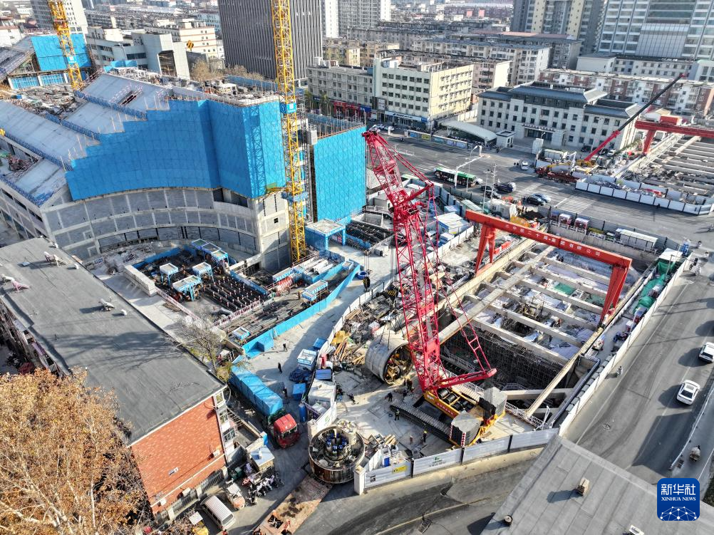 12月9日,中铁二十局工人在石家庄市地铁5号线一期03工区施工现场装载盾构机。新华社记者 牟宇 摄