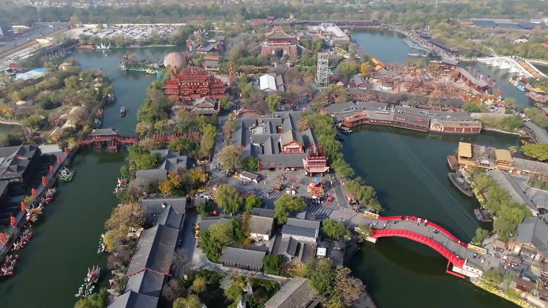 在球幕影院,北宋画家张择端的《清明上河图》“活”了起来,在动态光影辅助下,游客仿佛跃入画中游览千年前的东京汴梁。