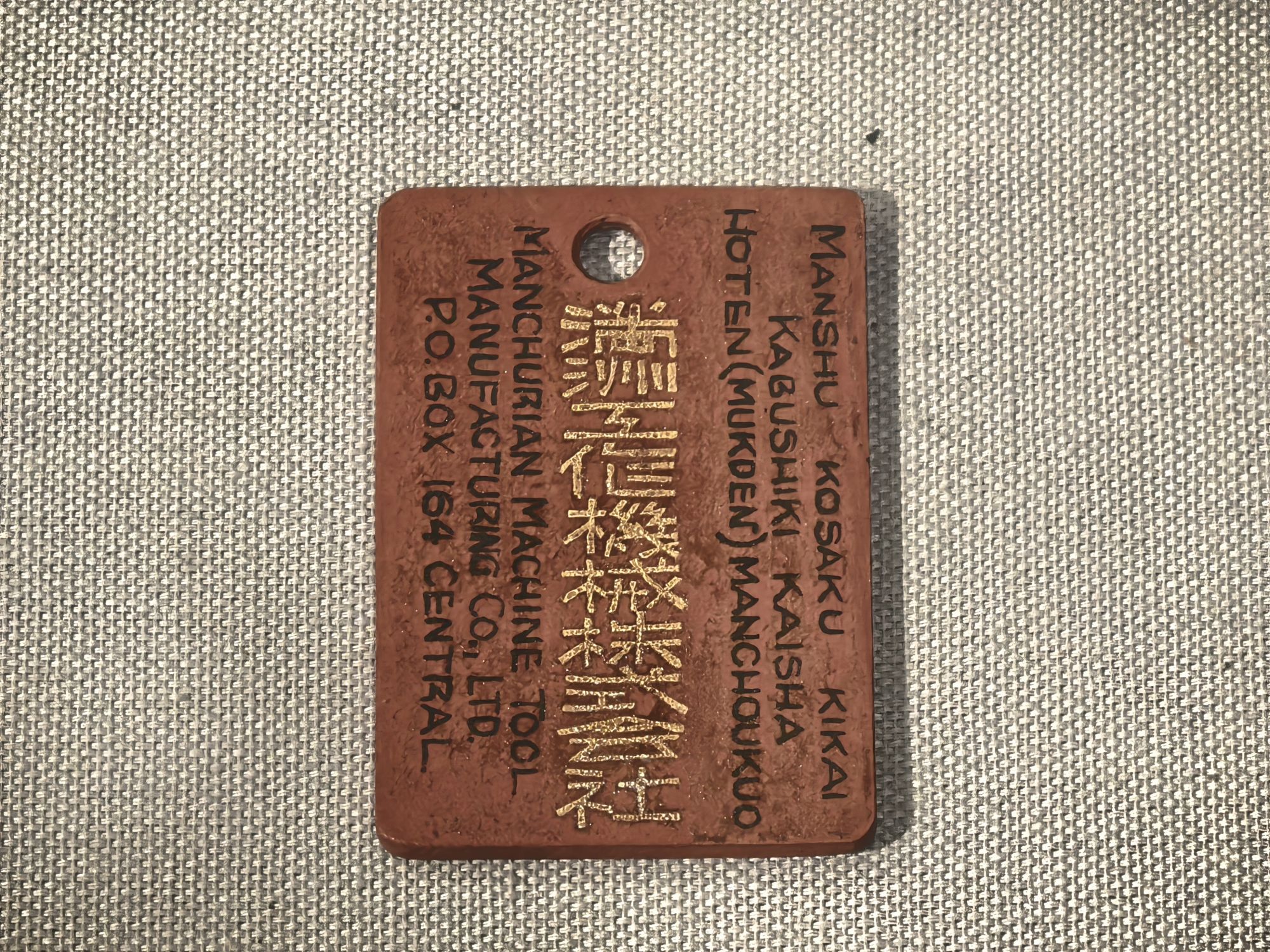 1051号战俘号码牌上印着“满洲工作机械株式会社”。新华社记者 武江民 摄