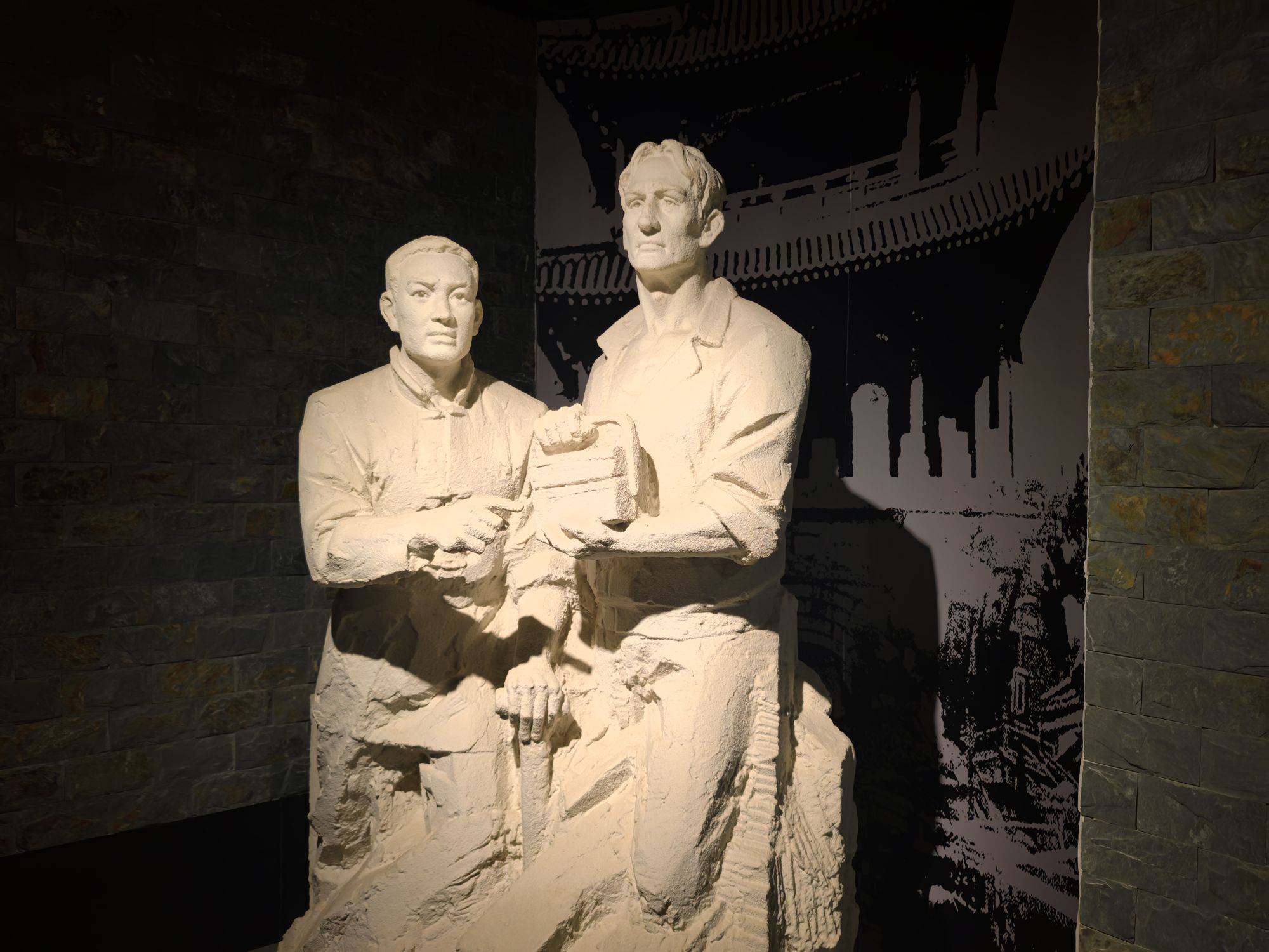 在沈阳二战盟军战俘营旧址陈列馆,一尊名为《友谊》的雕塑。新华社记者 武江民 摄