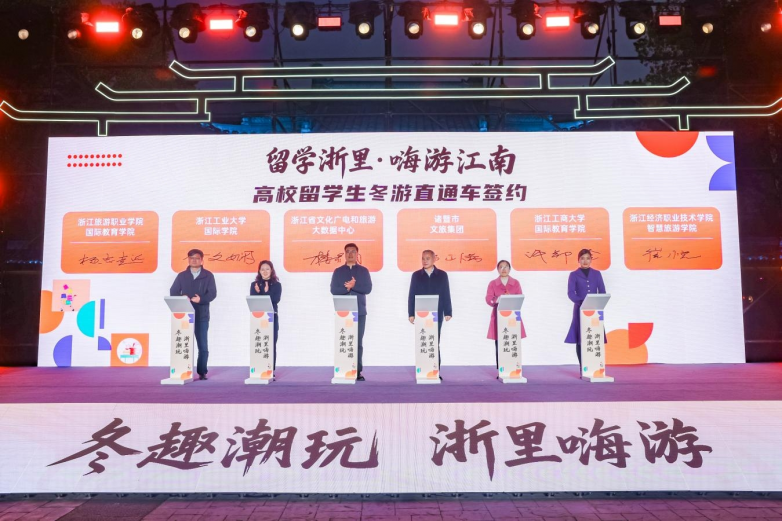 活动还进行了“留学浙里・嗨游江南”高校留学生冬游直通车签约仪式,助力外籍学子深度体验浙江冬季文旅魅力,推动“诗画浙江”品牌国际化传播。据悉,项目首发团于活动当日启程,高校留学生将从西施故里出发,开启一场浪漫冬日游。