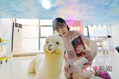 在南昌市某“萌宠吧”,一名女孩和萌宠合影。本报全媒体首席记者李 劼摄