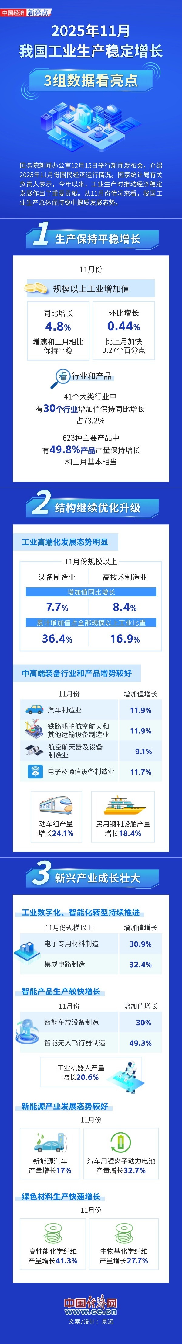 来源标题:【图解】11月我国工业生产稳定增长,3组数据看亮点