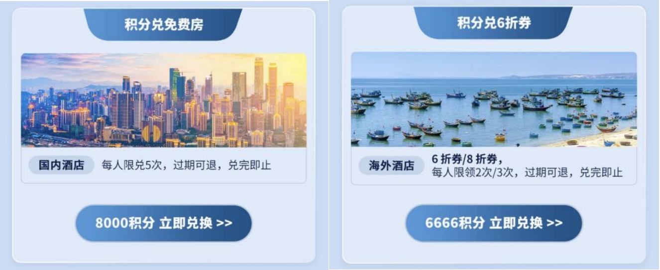 当狂欢遇上积分,生活化作无限可能。走过忙碌的365天,会员在锦江荟APP/小程序的每一次消费,无论入住、出游,还是享用锦大师美食,都能积累积分。现在,8000积分让你畅享国内酒店免费入住,6666积分则打开海外探索之门——6折/8折券任你选,漫步异国风情或探寻海岛秘境,都能轻松负担。积分不再局限于酒店,更化身通用货币,让每一分都物超所值。