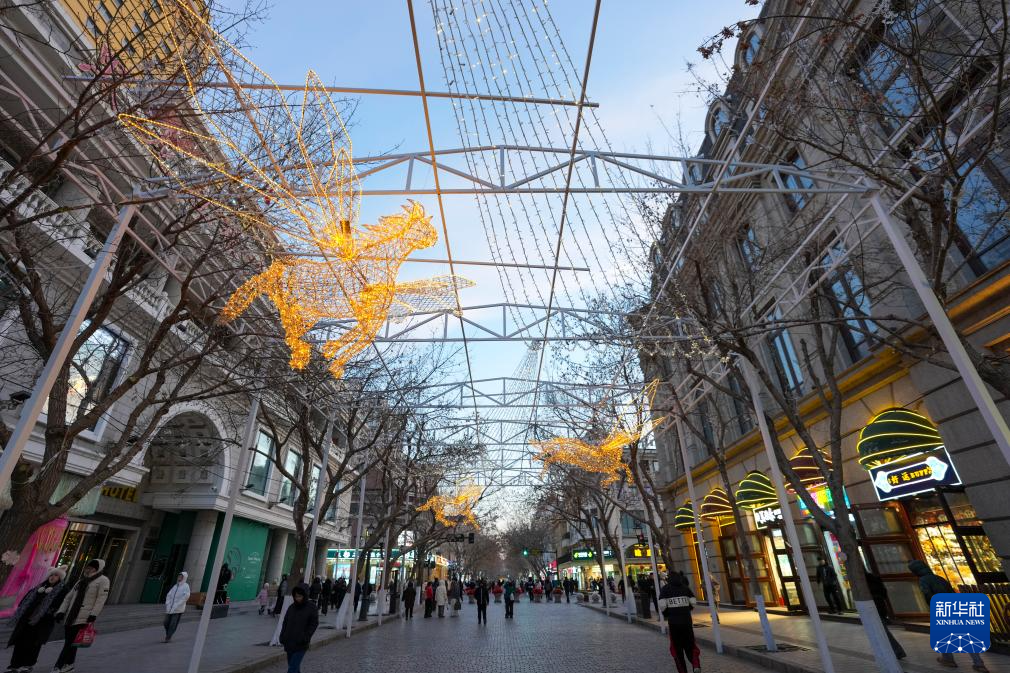 12月以来,哈尔滨进入冬季旅游旺季,中央大街上游人如织。作为哈尔滨市闪耀的城市名片,中央大街在丰富多彩的创意景观与灯饰装饰下显得格外动人。夜幕降临,华灯初上,游人徜徉其中,尽享当地独特文化魅力。
