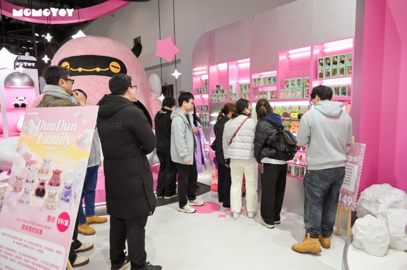 据了解,本次QDF展会期间,“墩墩兽”系列盲盒大受欢迎,现货全部售罄。通过明星预热制造第一波吸引力,线下展会承载流量、实现与用户的深度沟通,黄金材质的创新产品提升潮玩的收藏价值……MOMOTOY展台前持续排起的长队和社交媒体上的刷屏讨论,印证了这一策略的市场穿透力。