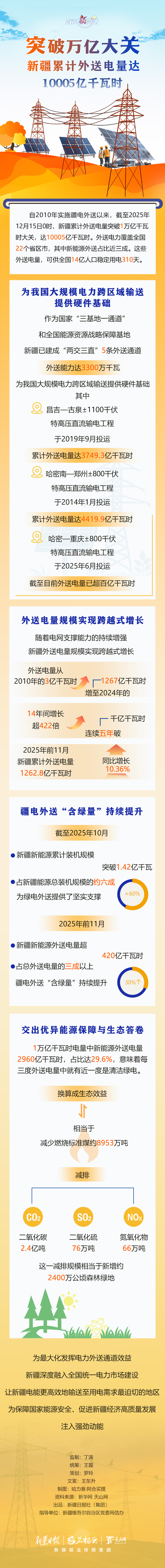 来源标题:数说“新”变化丨突破万亿大关 新疆累计外送电量达10005亿千瓦时