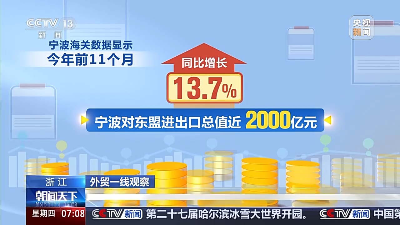 宁波某外贸企业负责人 陈斌:今年我们企业1到10月份,出口东盟相比去年有了50%到60%的增长。