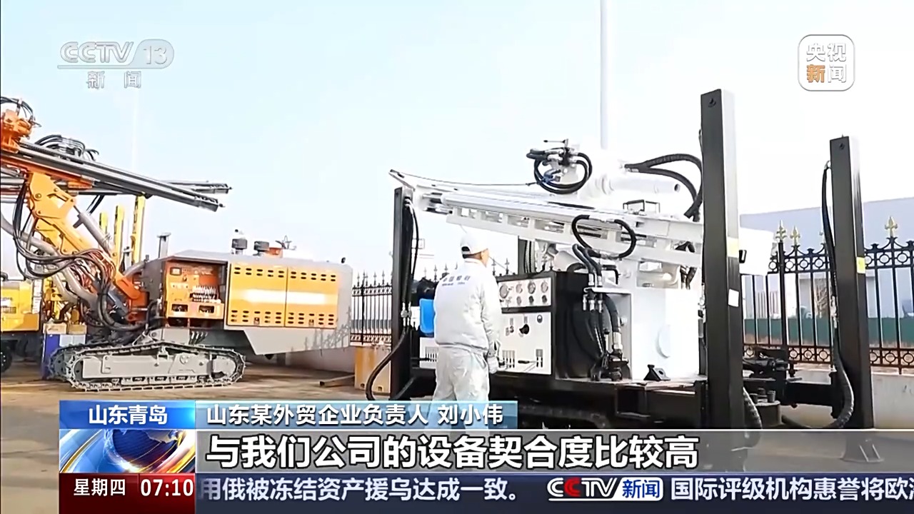 山东某外贸企业国际贸易部商务部长 刘放涛:我们公司通过参加线下国际展会和线上电商平台等方式,不断开拓国际市场,今年凿井机械和钻探机械等设备对非出口量实现倍增。