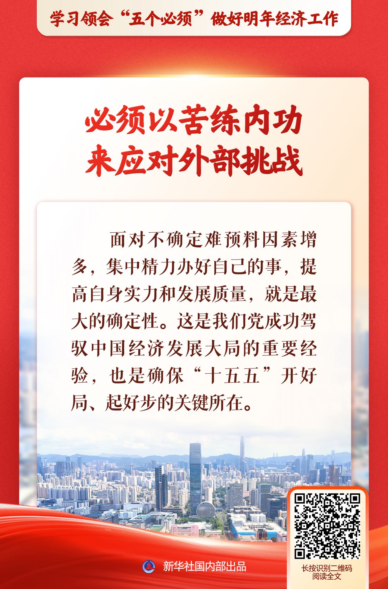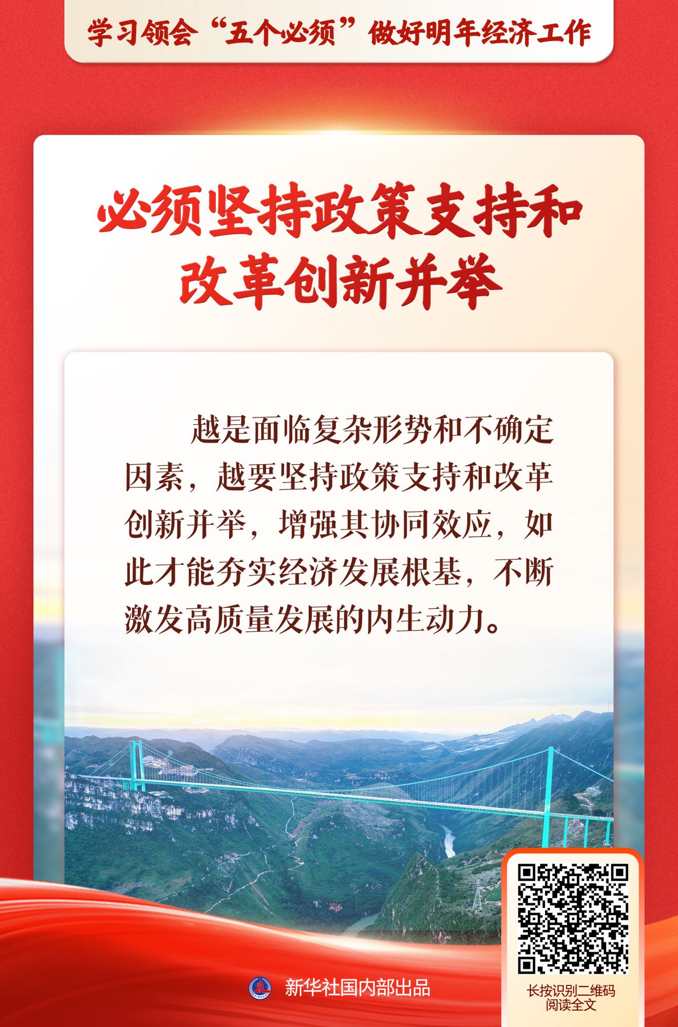 日前举行的中央经济工作会议上,习近平总书记以“五个必须”概括做好新形势下经济工作新的认识和体会。12月15日至19日,新华社播发一组五篇重磅述评,深入阐释“五个必须”的丰富意涵。