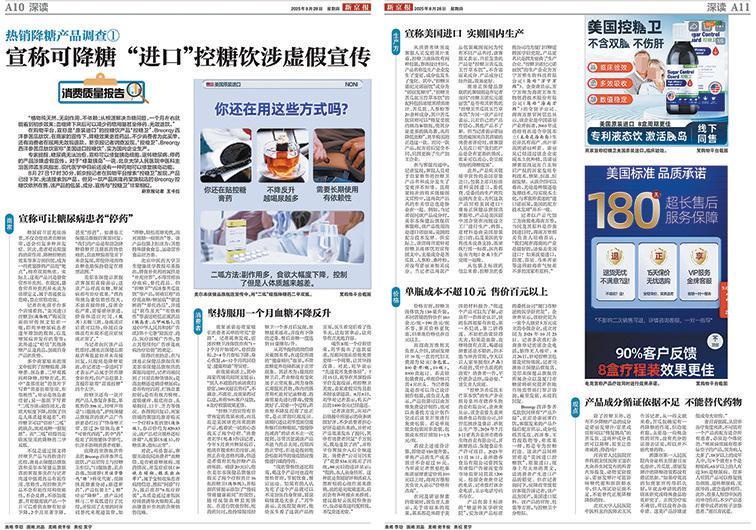 今年8月,新京报刊发了进口“控糖饮”涉嫌虚假宣传的相关报道,揭露了多款普通食品虚假宣称降糖功效,围猎高血糖及糖尿病人群的乱象。报道发布后,报道中涉嫌虚假宣传的“控糖卫液体饮”“Breorqy西洋参苦瓜肽饮”“控糖卫低聚糖人参复合多肽片”均做下架处理。