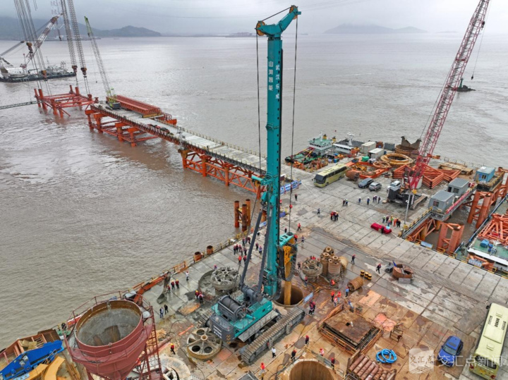 山河智能SWDM1280型旋挖钻机在甬舟铁路西堠门公铁两用跨海大桥施工