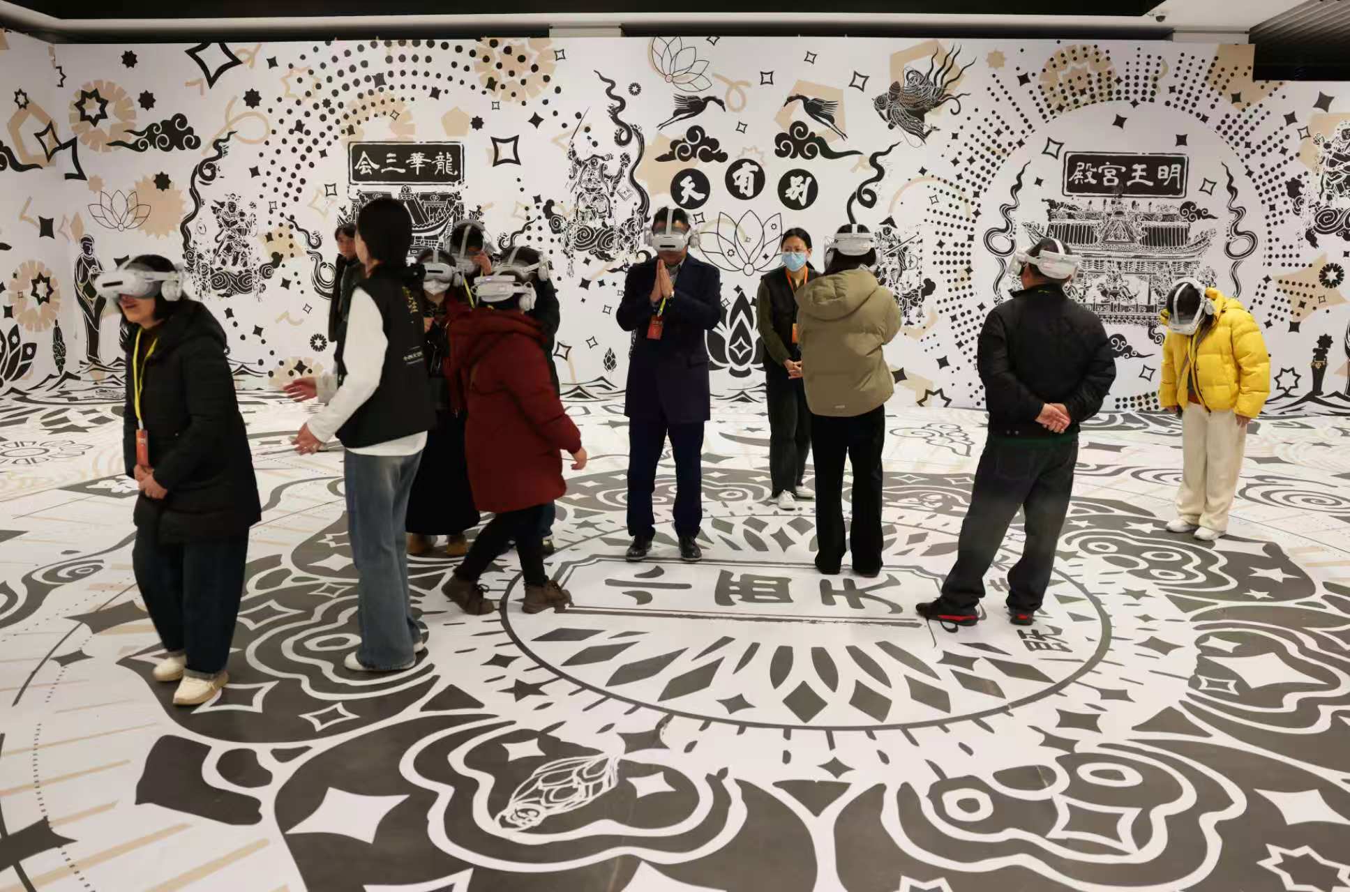 观众戴上VR眼镜沉浸式参观小西天悬塑全貌。新京报记者 浦峰 摄