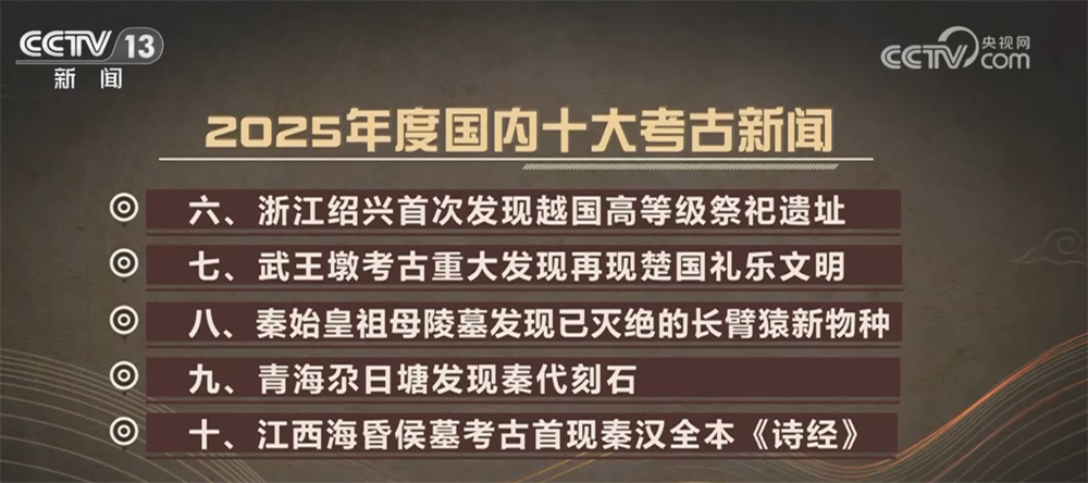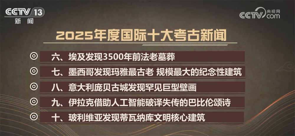 中央广播电视总台12月24日发布2025年度国内国际十大考古新闻。