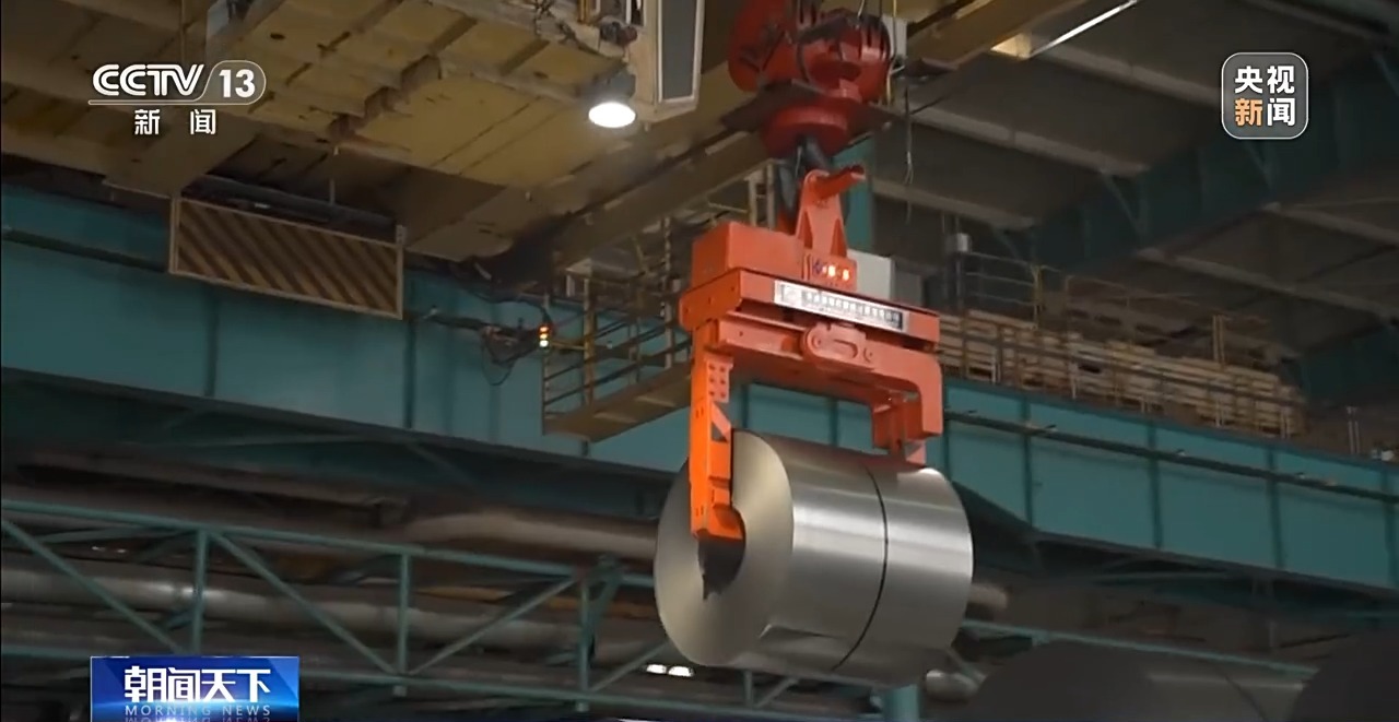 这里就是近零碳钢铁产线最后一道工序,第一炉钢水浇筑出的第一块钢板正式出炉。此刻它的表面温度高达700℃,热浪袭人,通体红亮。它每年可以生产180万吨低碳排放钢,完全满足最严苛的欧盟标准,用它生产的汽车、轮船、家电等产品将会大幅地拓展国际市场,获取更高的商品溢价。