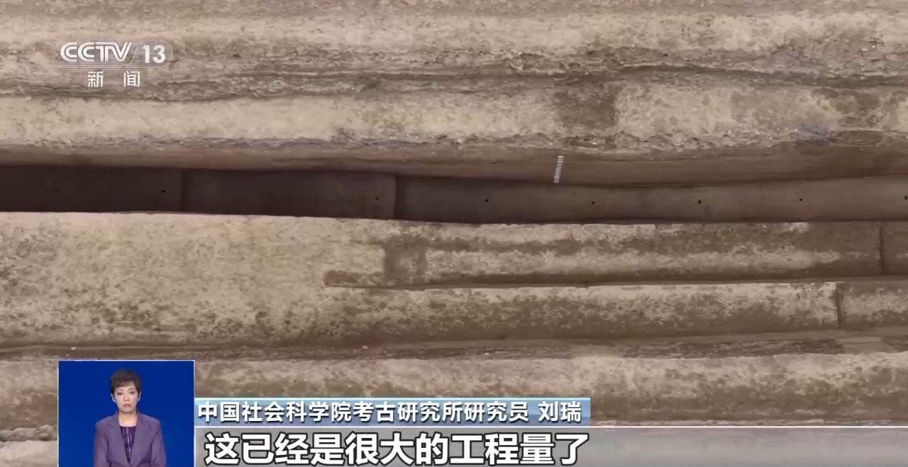 中国社会科学院考古研究所助理研究员 何家欢:这边深,这边浅,每一层都有这个东西,它就是两边的施工队取土来源不一样。