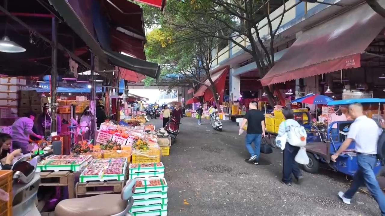 与此同时,蔬菜交易同样繁忙。当前是广东冬种蔬菜陆续开始收割、大规模上市的时候。近期稳定的气候也为蔬菜的生产和运输提供了有利条件,目前这里超过四成、近4000吨的蔬菜将运往北方地区。