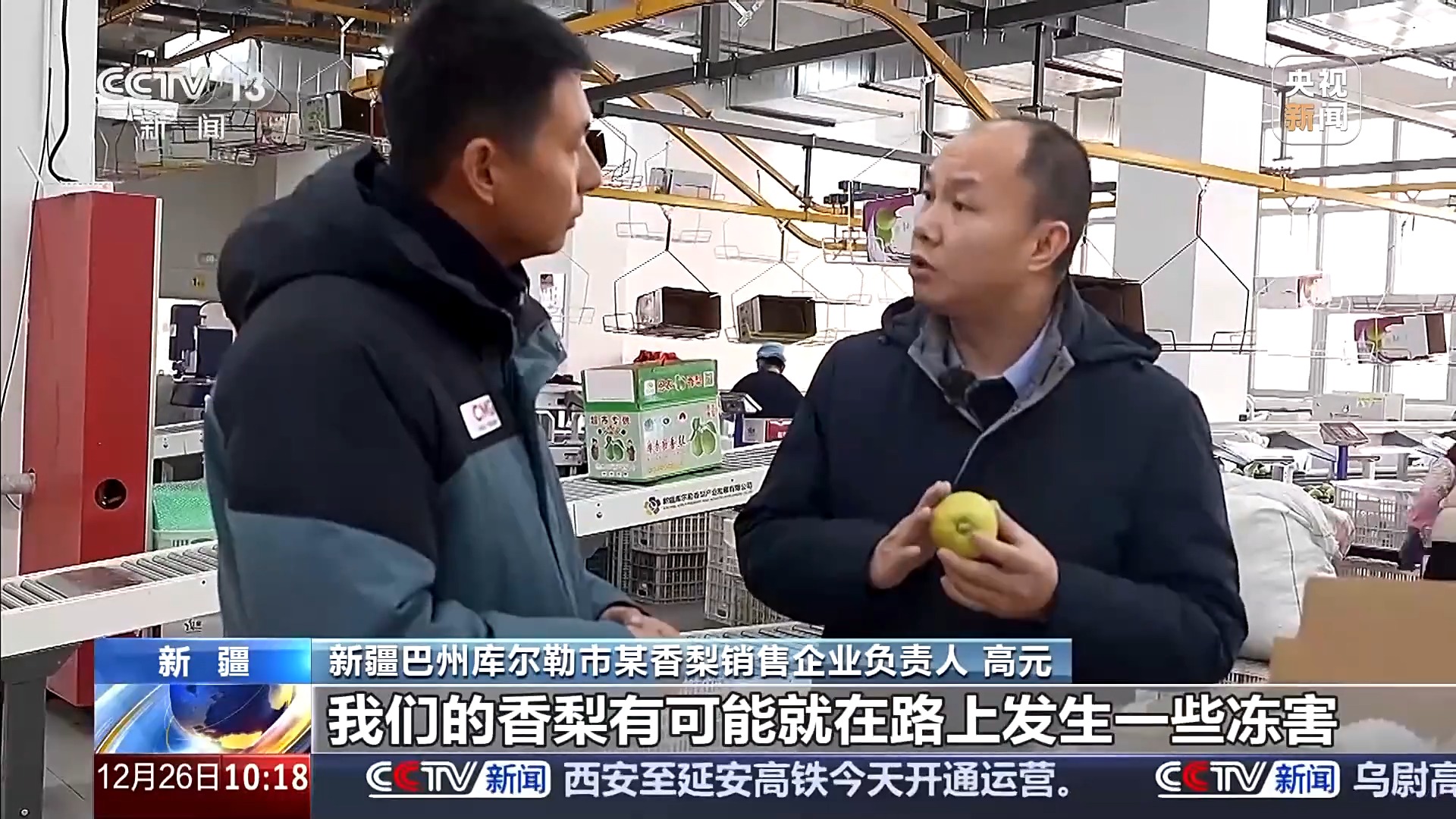 新疆巴州库尔勒市某香梨销售企业负责人 高元:乌尉高速开通前,特别是冬天,在路上要运输7个小时,香梨有可能就在路上发生一些冻害,现在时间缩短到三个半小时,我们就可以更高效地把香梨销售到乌鲁木齐。