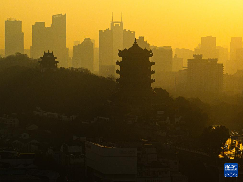 12月26日,武汉黄鹤楼沐浴在晨光中(无人机照片)。新华社记者 肖艺九 摄