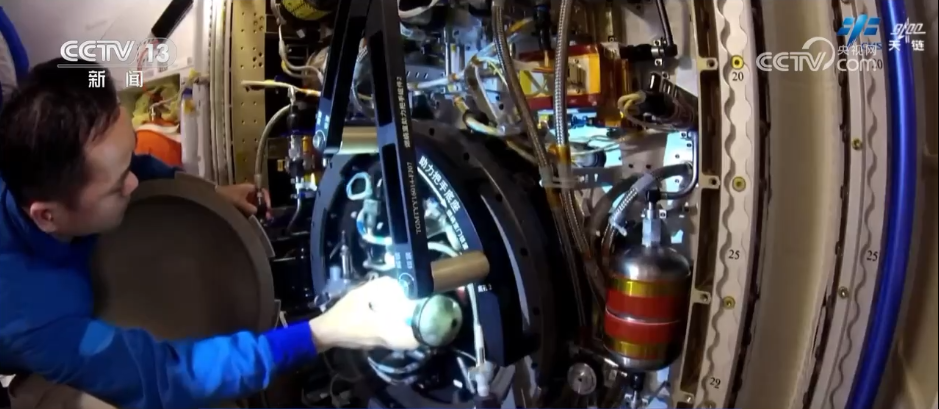 在微重力物理科学领域,乘组根据实验安排,完成了流体物理实验柜中复杂流体实验模块拆装、并更换了实验样品;乘组更换了燃烧科学实验柜内气体实验插件采样盖。此外,乘组还进行了无容器柜实验腔体样品清理与更换、轴心机构电极维护等工作。