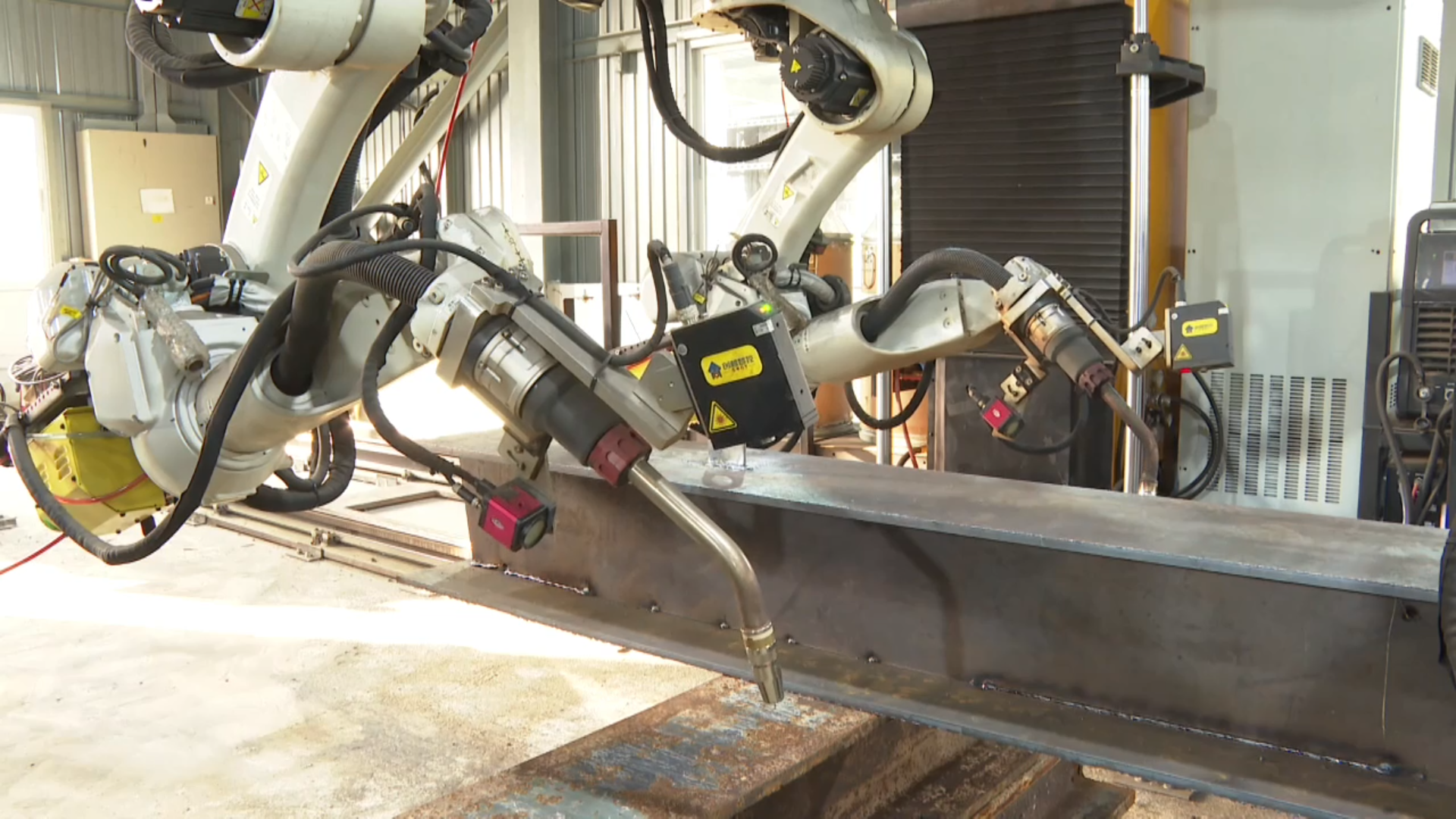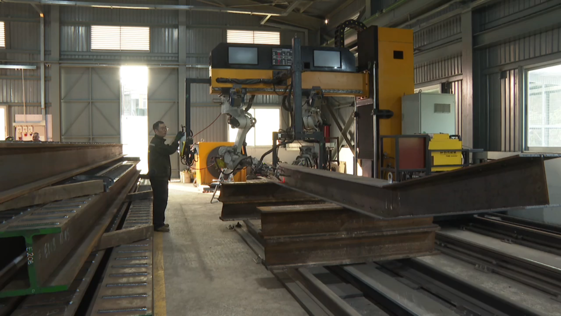 在和利绿色动力有限公司位于香港粉岭的焊接工厂,梁志豪身着工装夹克,站在显示屏前输入指令,两只机械臂就“左右开弓”,不到两小时就把一段6米长的H型高强度钢材焊接完毕。在引进这套智能技术方案之前,同样的工作需要两个技工戴上厚重的防护头盔,身穿“气鼓鼓”的降温风扇外套,在四溅的火花中用烙铁手动完成。