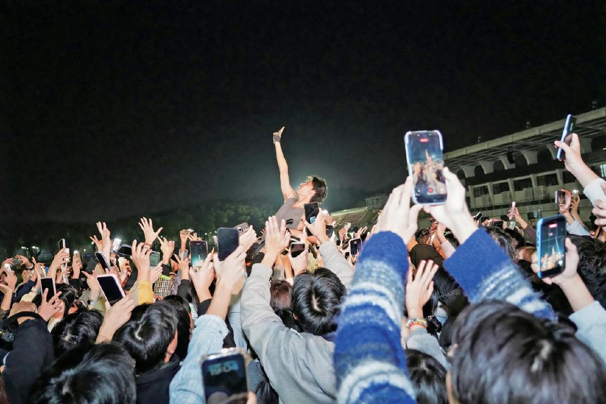 马尚在成功守住球后,宁波大学的学生们将他举了起来。受访者供图