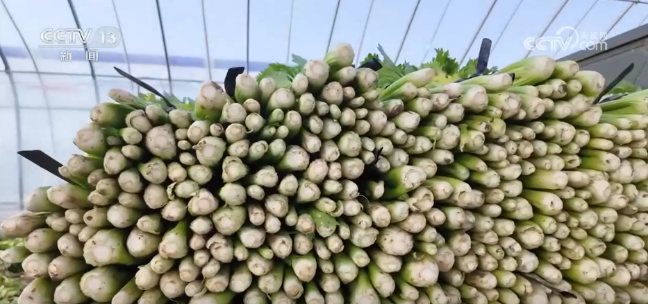 央视网消息:随着元旦假期即将到来,蔬菜市场迎来销售旺季,位于山西省忻州市高城村大棚温室内的芹菜也迎来收获期。