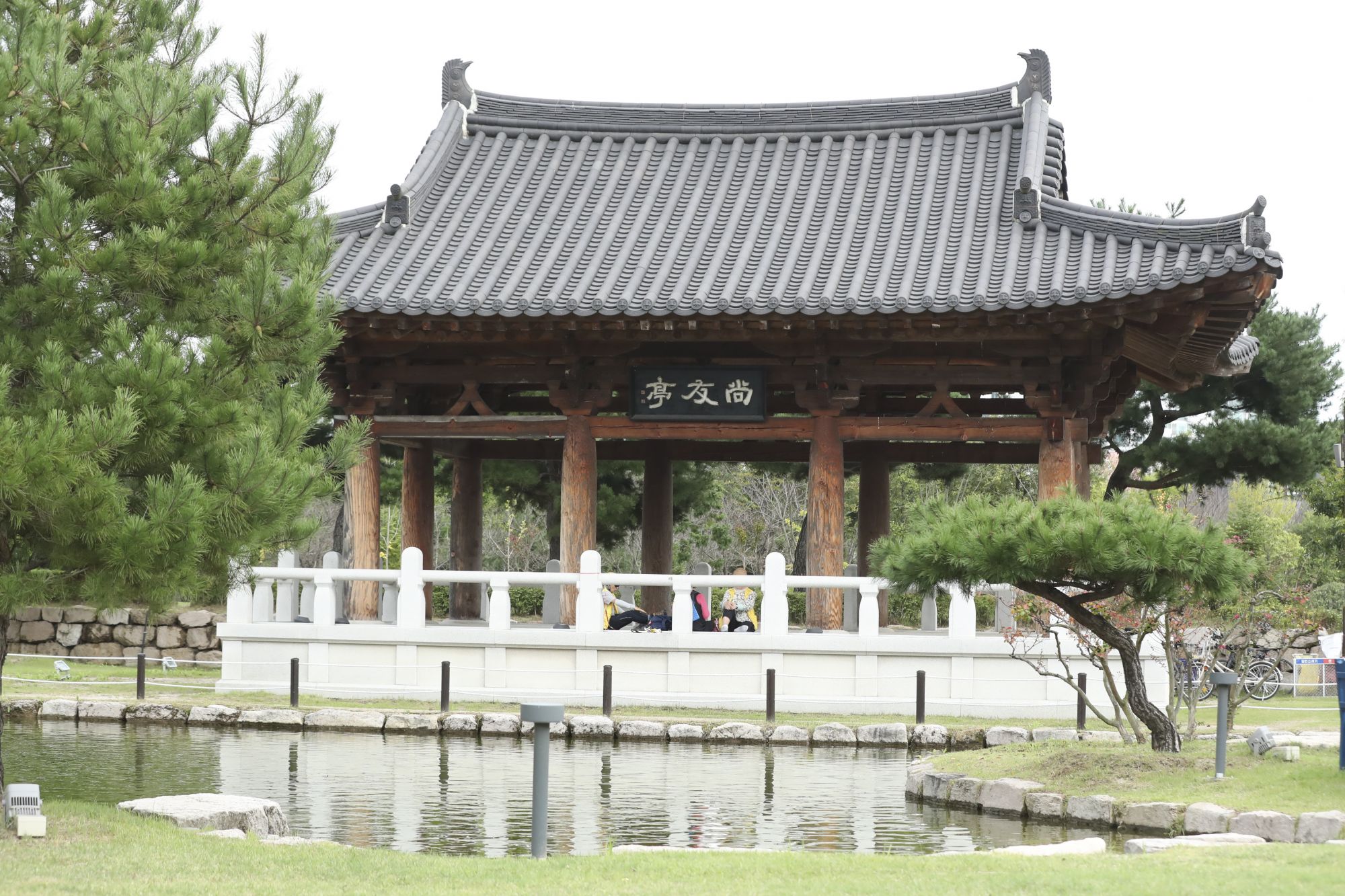 10月17日,市民在韩国庆州的“韩中友好林”公园里的尚友亭休息。新华社记者 姚琪琳 摄