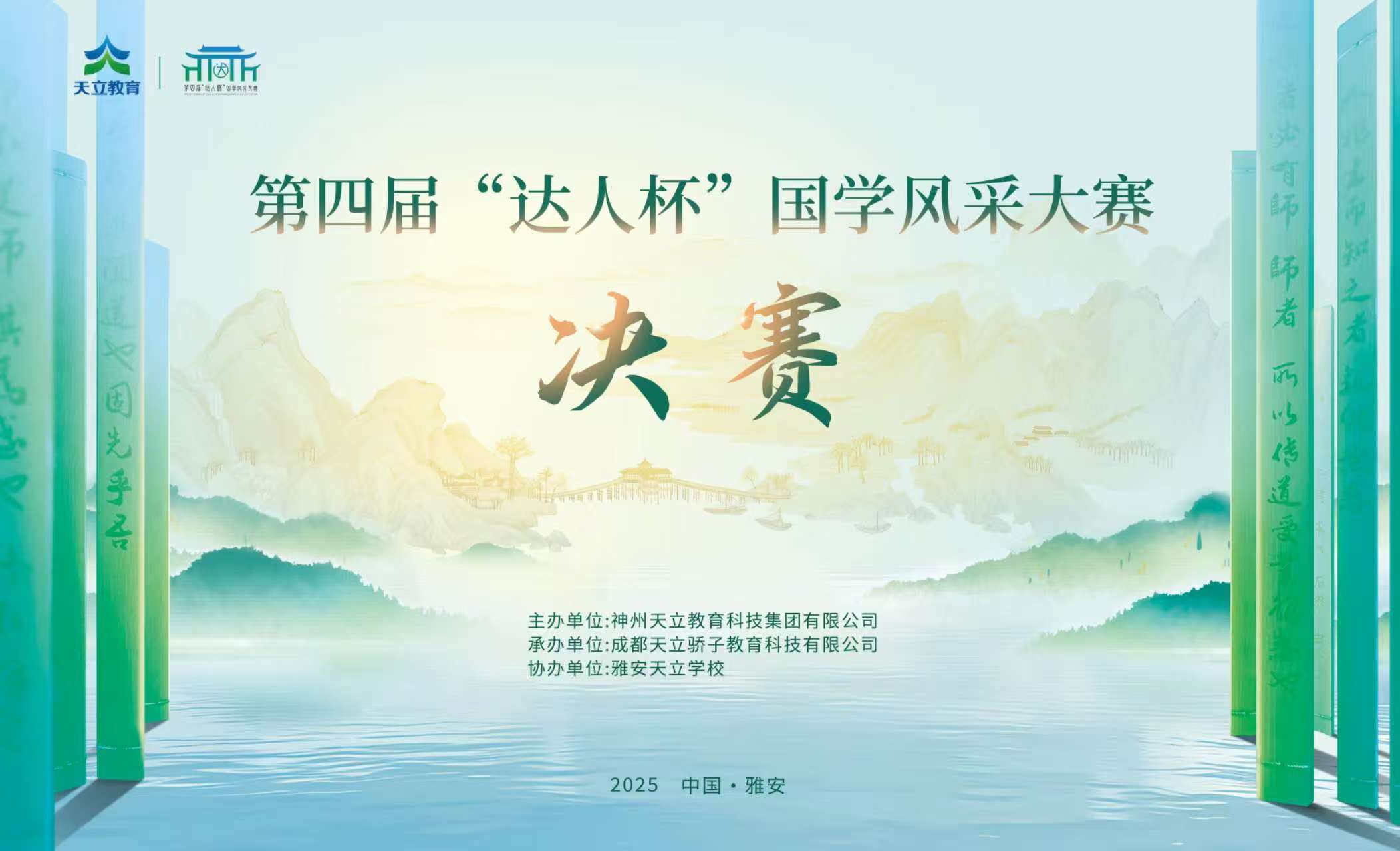 智慧与传承在这里相遇,经典与创新在这里交融。2025年12月28日,天立教育集团在四川雅安成功举办“达人杯”国学风采大赛决赛。本次活动由天立国际集团旗下天立教育主办,天骄素养承办,充分体现了天立集团在文化育人、素养培育方面的系统布局与资源协同,为冬日雨城带来了一场激情洋溢的国学盛宴。