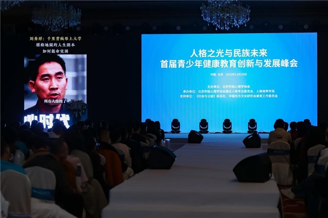 2025年12月29日,人格之光与民族未来-首届青少年健康教育创新与发展峰会在京隆重举办。本届峰会由北京积极心理学协会主办,北京积极心理学协会健全人格专业委员会、人格频率学苑联合承办,《社会与公益》杂志社、中国东方文化研究会美育工作委员会支持,汇聚来自社会工作、心理学、教育界、科技、传统文化领域的众多专家学者、爱心人士等,共同深入探讨青少年心理健康守护的创新路径与社会协同机制,为青少年健康成长注入多元合力。